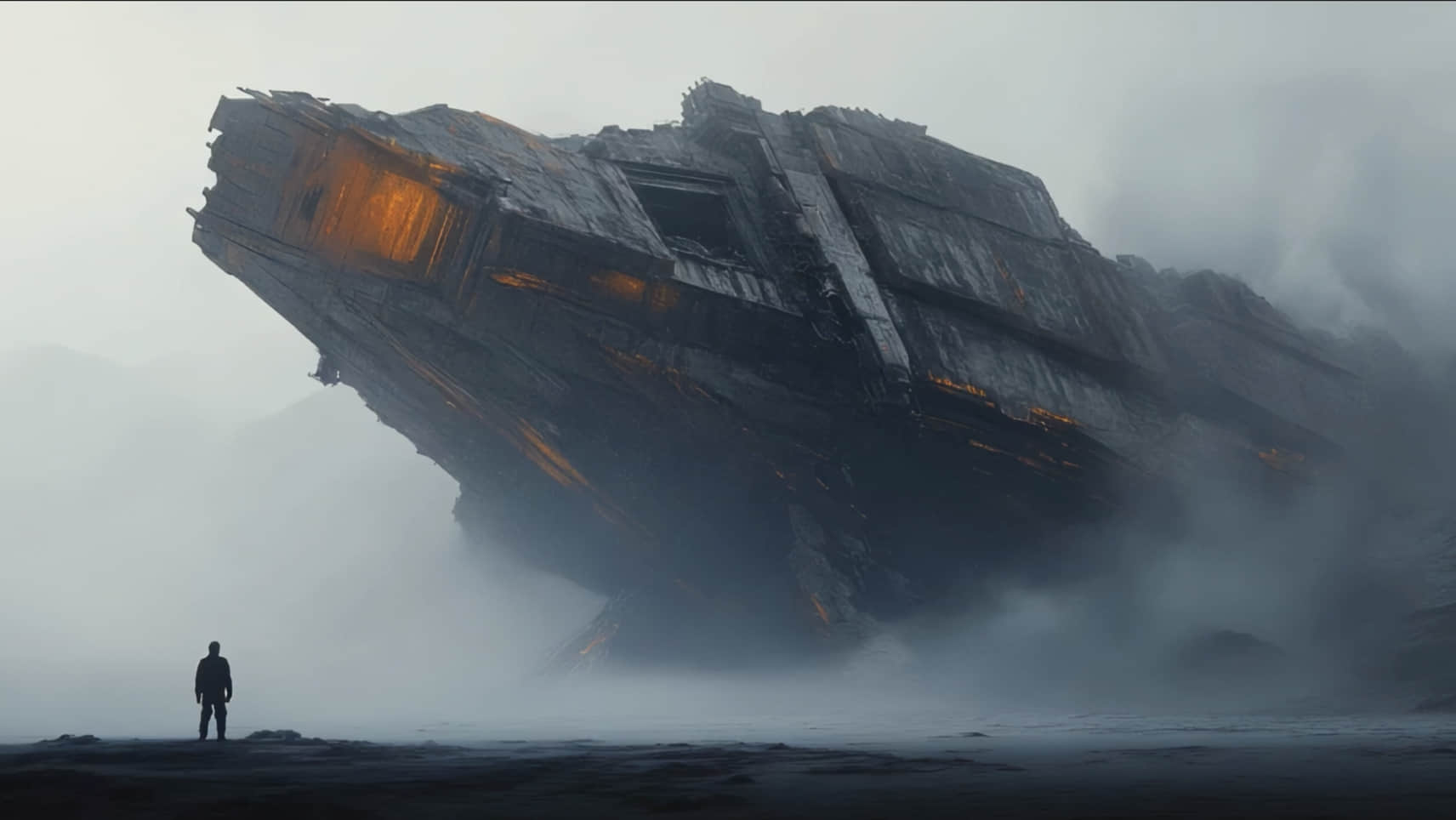 一艘雄伟帆船在金色暮光映照下的深蓝海面上破浪前行,径直驶向天际那团翻涌着炽光的巨型风暴漩涡。镜头以广角远景开场,随后从船尾低空推近,如掠浪滑翔般缓缓逼近船体。鎏金光斑在水面跃动,云层间雷电与星辉能量交织脉动。隐约渐起的管弦乐烘托出悬疑氛围,与此刻的壮阔奇景共鸣。电影级运镜。